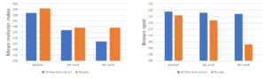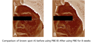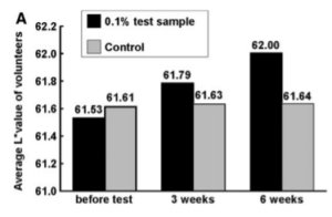 อาสาสมัคร 17 คน ที่ใช้ครีมทาหน้าที่มีส่วนผสมของสารสกัดจากเปลือกสนความเข้มข้น 2 เปอร์เซ็นต์ (pine bark extract, PBE) เป็นเวลา 8 สัปดาห์ มีค่า mean melanin index (MMI) ลดลงอย่างมีนัยสำคัญ