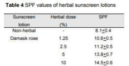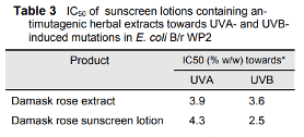 สารสกัดจากกุหลาบ ได้รับการพิสูจน์ว่ามีคุณสมบัติในการเสริมประสิทธิภาพ SPF ในผลิตภัณฑ์กันแดด ช่วยเพิ่มค่า SPF และยังต่อต้านการกลายพันธุ์จาก UVA และ UVB